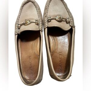 COACH Arlene Pebbled Leather Turnlock Loafers - Nude/Beige Size 6.5