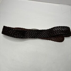 Chicos Brown Woven Leather Belt Womens Oval Beaded Buckle Boho Coastal Cowgirl