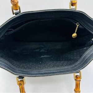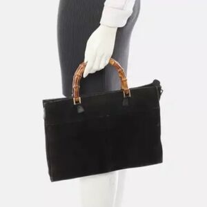GUCCI Black Suede Bamboo Top Handle Satchel Hand Bag!