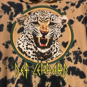 Embrace bold style with this Def Leppard hoodie featuring a striking leopard graphic. The tan and black colors add a unique touch to your casual wardrobe.