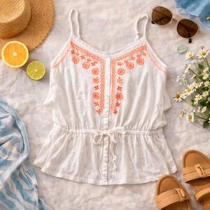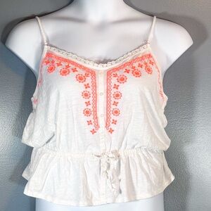 Aéropostale Boho Embroidered Peplum Cami Top White Orange Size XL