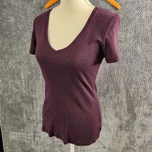 GAP Womens Plum V Neck Short Sleeve Basic T Shirt Top Size M