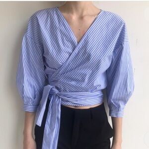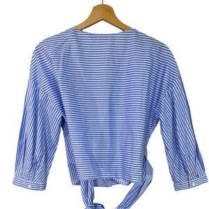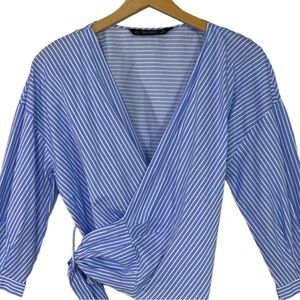 Zara Blue White Stripe Short Shirt Wrap Around Size Small