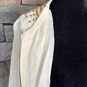 Michael Kors Cream Cardigan with Gold Sequins