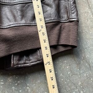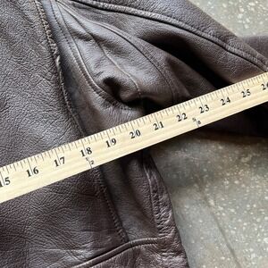 Vintage 50s 60s Mens Brown Leather Bomber Jacket Shearling Collar Aviation Style