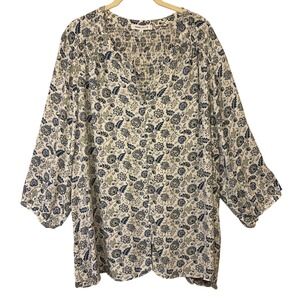 ROSE & OLIVE Plus 3X Smocked V Neck Floral Print 3/4 Sleeve Button Front Blouse