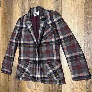 VTG Sagamore Way 70s Womens Wool Blend Blazer Jacket 13/14 Tartan Plaid Check