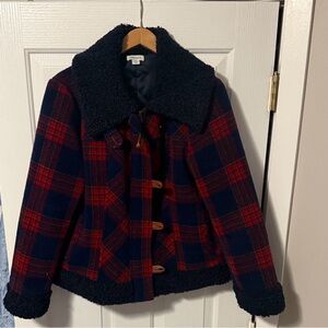 Stylish red jacket with a hood. Ideal for wet weather.