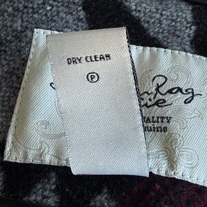 Branding: Woven American Rag Cie main label at back neck with interior size and fabric content tags; spare button attached on interior ribbon loop.