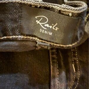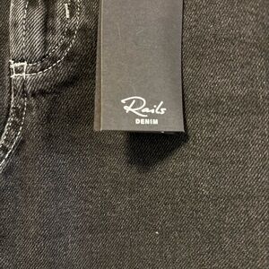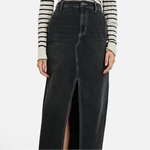 NWT Black denim skirt by Rails. Features two front side front pockets and two back pockets, Premium 100% Cotton denim with front slit, Zip fly with button closure. Brand new with tags, only call out is some hanger marks on back patch (see photo)