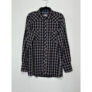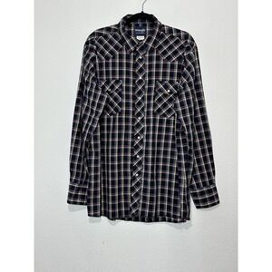 Wrangler Western Shirts Retro Long Sleeve Pearl Snap Shirt Mens XLT Black Purple Plaid.