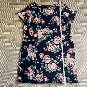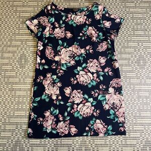 Navy and Pink Floral Print Shift dress