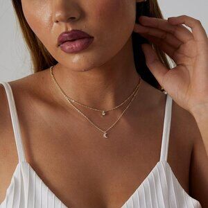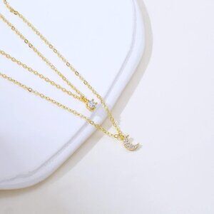 Layered Gold Necklace for Women 14K Plated Moon Pendant Cubic Zirconia Jewelry