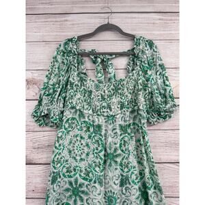 Anthropologie Floral Open Tie Back Midi Dress Womens Large White Green Stretch