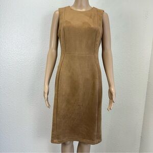 CALVIN KLEIN Faux Suede Sheath Dress Coffee Latte Sz8 Corpcore business casual