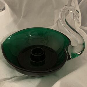 Emerald Green Vintage Swan Candleholder Duncan & Miller Glass Co.