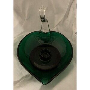 Add some elegance to your candle collection with this stunning green glass swan candle holder from Duncan & Miller Glass Company. The vintage piece showcases an intricate pattern of Sylvan Swan and a glossy finish that makes it perfect for any occasion. Its unique design and material make it a beautiful addition to your decorative pottery and glassware collection. Get this charming candle holder now and elevate the ambiance of your home.
