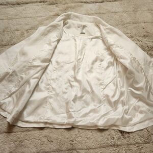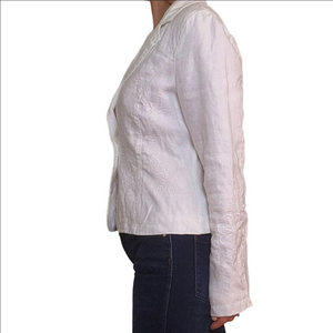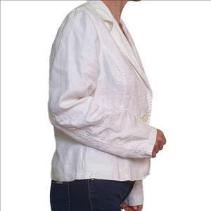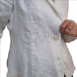 Vintage Women's Blazer White Embroidered Collared 100% Linen BOHO Western Floral