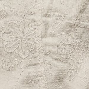 White embroidery throughout the piece