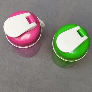 Set of 2 RUBBERMAID Chug Style Flip Top 14 oz. Plastic Drink Bottles 7M21