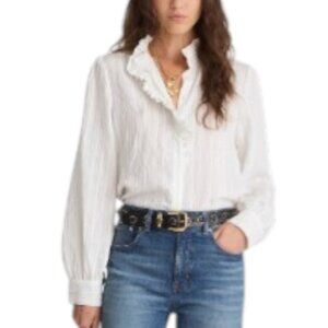 Features: Side Pockets, Button Front Closure, Short Flutter Sleeve, Soft Ruffled Round Neckline, Flowy Ruffle Hem