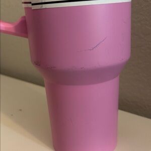 Enjoy your drinks in style with the Pink Stainless Steel Insulated Tumbler. Keep beverages hot or cold for hours with its durable design. Has stains/scratches as shown (still functional)