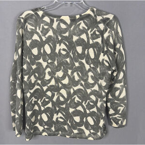 Color: Gray abstract brushstroke pattern on an white/cream knit background.