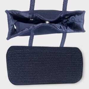 The Sak Classic Crochet Knit Shoulder Tote Navy Blue Silver Nickel 2-Handle Bag