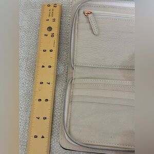 Michael Kors EUC Hamilton Traveler zip-around wallet cream/buff pebbled leather