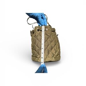 Ann Taylor Army Green Quilted Drawstring Bucket Bag | Crossbody & Shoulder Strap