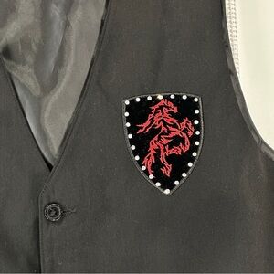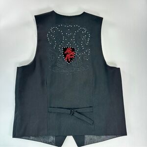 Pannocito Western Embroidered Vest Velvet Crest Rhinestone Black Size M