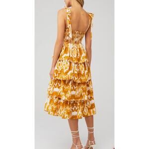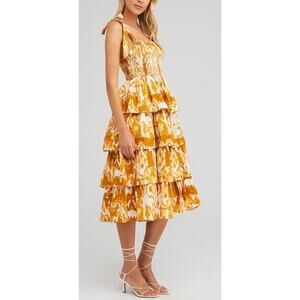 Cleobella Midi Dress Shae Ruffle Tiered 100% Cotton Yellow Print