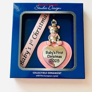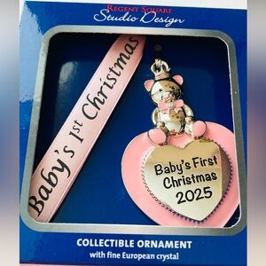 Brand New Regent Square Studio Design Baby's First Christmas Ornament Collectible with European Crystal. Celebrate your baby's first Christmas with this charming ornament. Featuring a delightful pink and silver design, it's a perfect keepsake for the holiday season. ***Bundle to save on shipping and get 10% discount. The discount will appear automatically in your basket if you have 2+ items from my closet.