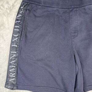 The Armani Exchange Shorts in Blue Size Medium for men are a stylish and comfortable choice for casual wear during the summer, fall, and spring seasons. Made from a cotton blend material, these shorts feature a solid pattern with a drawstring closure for an adjustable fit. The flat front design with the Armani Exchange logo accents gives them a trendy look, perfect for traveling or everyday wear. With an inseam of 8 inches and pockets for convenience, these sweat-style shorts offer both quality and style in men's clothing.