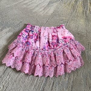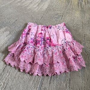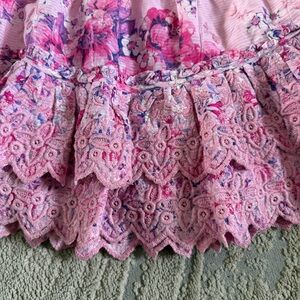 LoveShackFancy Cairo mini skirt pink purple floral tiered ruffled embroidered XS