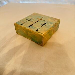 Enhance your space with this abstract canvas wall art featuring striking crosses in blue and gold tones. Perfect for adding a touch of elegance to any room.