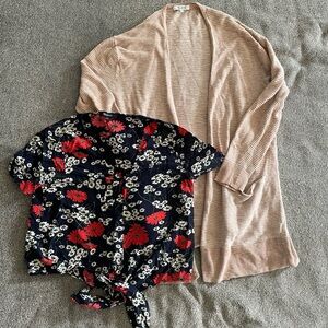 Chic coral cardigan with open front. Features ribbed cuffs and hem. Includes front pockets for convenience. GUC. Size Large.