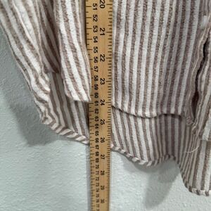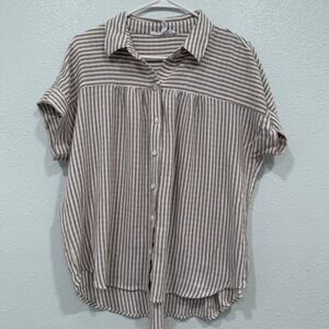 Keywords: Jane Delancey shirt, women's striped shirt, casual button down, short sleeve top, linen blend shirt, relaxed fit top, midi shirt, boho top, summer shirt, lightweight blouse, striped tee, women's fashion, trendy top, everyday wear