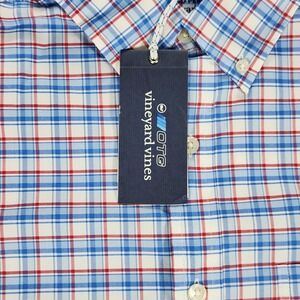 Vineyard Vines Shirt Mens Medium Red Check Long Sleeve OTG Performance