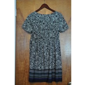 Navy blue patterned dress with garter sinching the waist from Francesca's. Material is 100% polyester. Brand new - never worn!