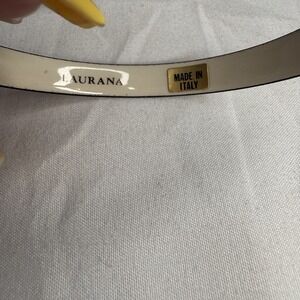 The Laurana bangle bracelets are a set of two interlocking vintage Italian pieces adorned with peacock feathers. These stylish bracelets add an elegant touch to any outfit with its unique design and high-quality materials. The brand Laurana ensures a reputable and reliable product, making these bracelets a fashionable and timeless accessory for any jewelry collection.