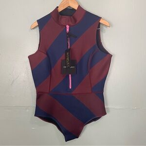 Cynthia Rowley Sleeveless Striped Byron Wetsuit Navy Burgundy New Women Sz 1X