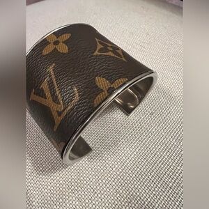 Authentic LOUIS VUITTON patch inlayed on a 2” NICKEL CUFF - handmade