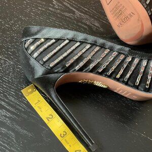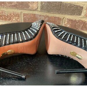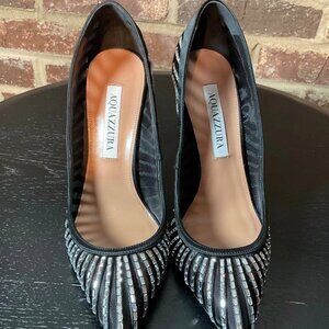 Aquazzura Black Mesh Crystal Embellished Stiletto Heels Pumps