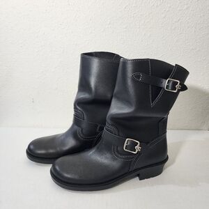Coach Black Leather Engineer Moto Ankle Boots Buckle Straps Relaxed Slouchy 8