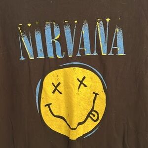 Nirvana Band Tee Graphic Grunge Black Short Sleeve Smiley Logo Crewneck Size M