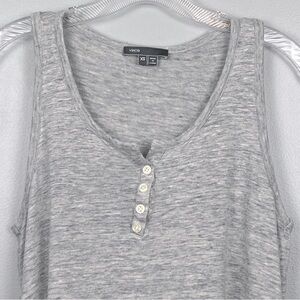 Vince heather gray knit 100% linen button detail tank top, size XS. Great condition. Approximate measurements 17” pit to pit, 22” shoulder to hem.