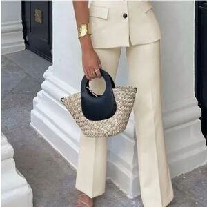 NWT Zara Women’s Contrast Ruffle Top in white with black trim, sz M
