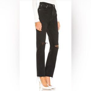 Agolde Cherie high rise black straight leg distressed 100% cotton jeans size 29