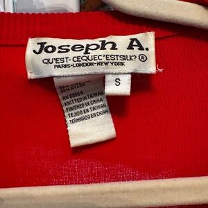 Chic red cardigan by Joseph A. Features a charming floral detail. Ideal for a vibrant look.